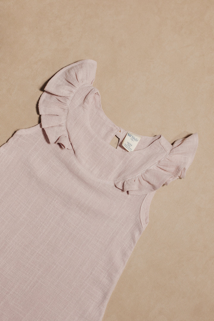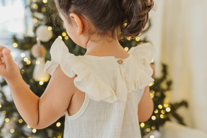 VESTIDO NIÑA BEBE RECOGIDO EN TIRANTES - 36/48 MESES / beige