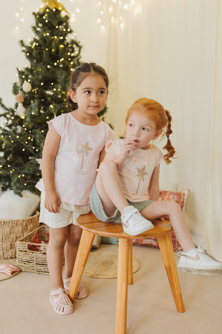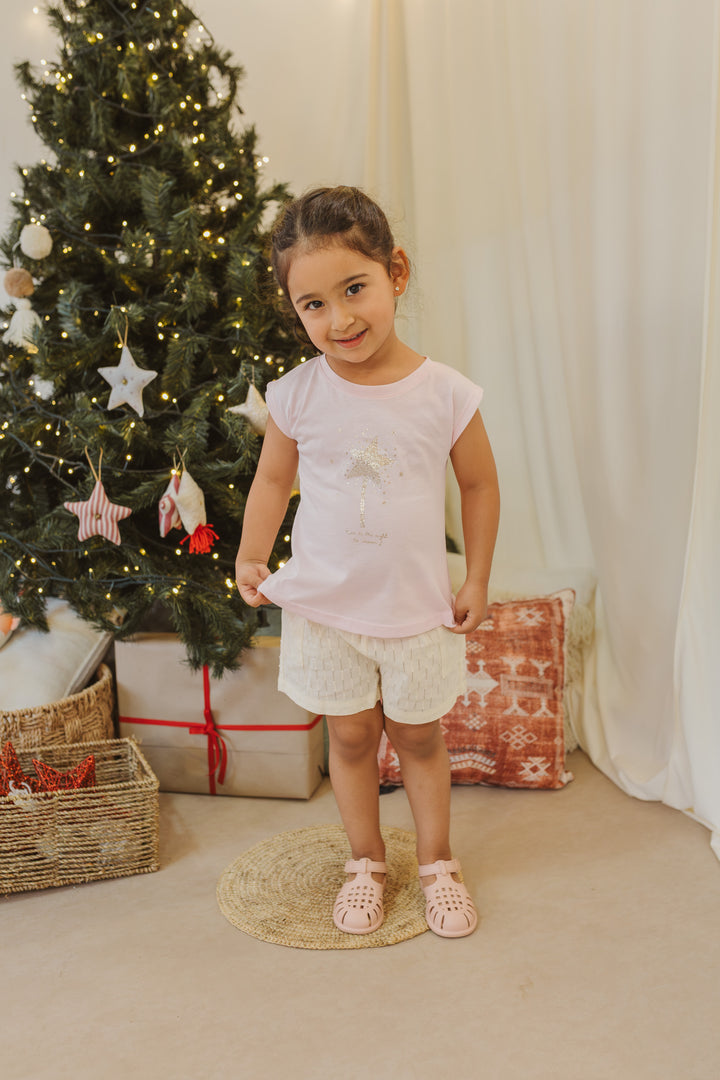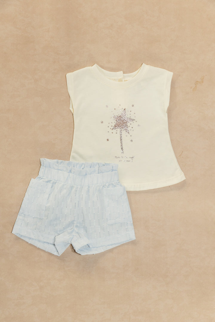 REF 22011 Este conjunto es perfecto para lucir linda y cómoda en cualquier ocasión. Incluye un short en plano con bolsillos laterales, ideal para que tu pequeña pueda moverse con...